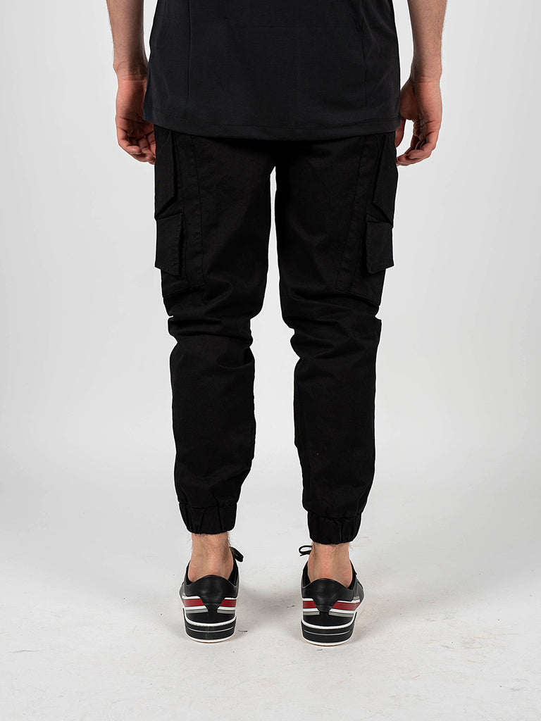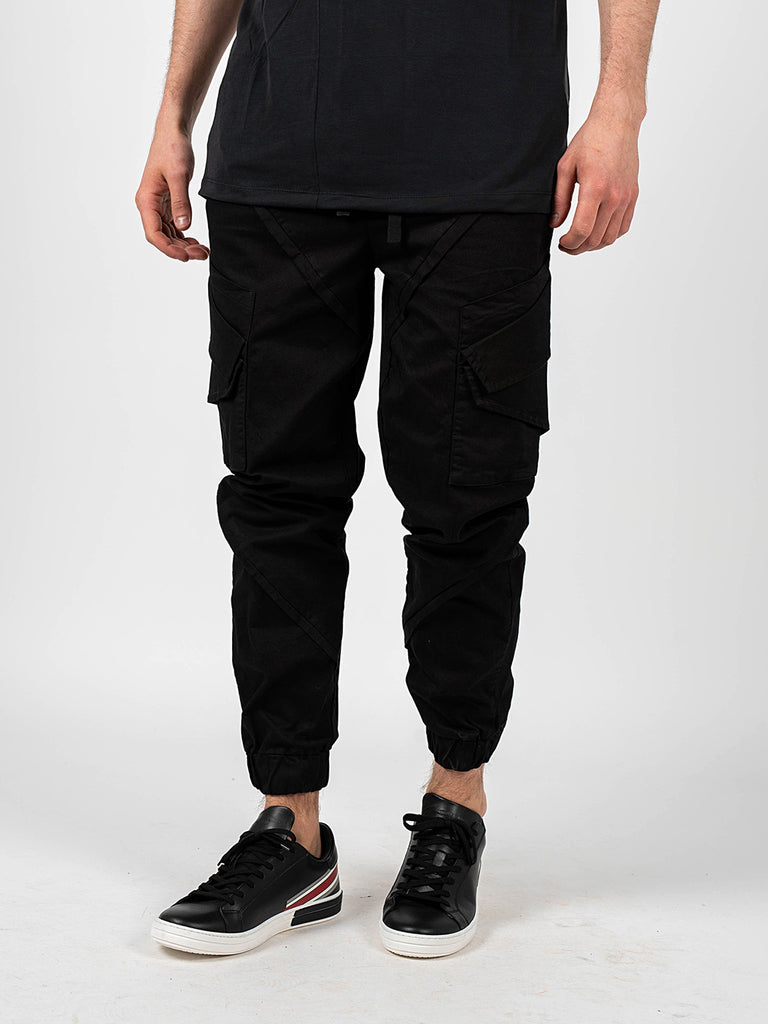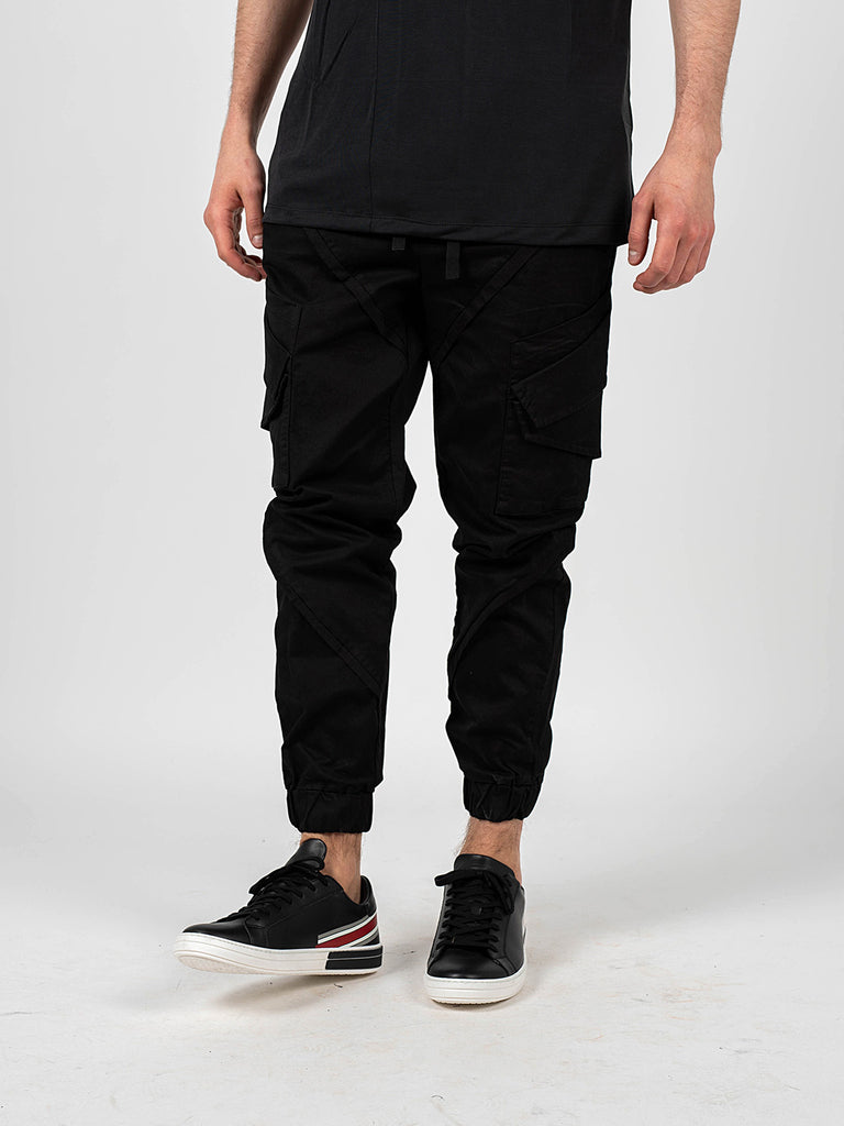 Mit Patten verzierte Taschen an den Beinen