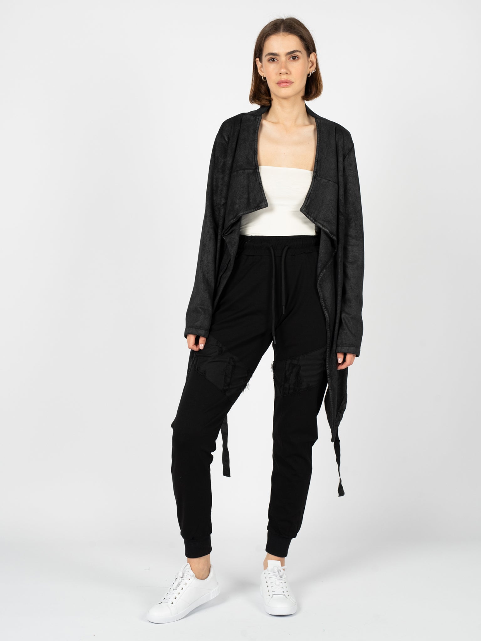 In der Taille mit Gürteln gebunden
