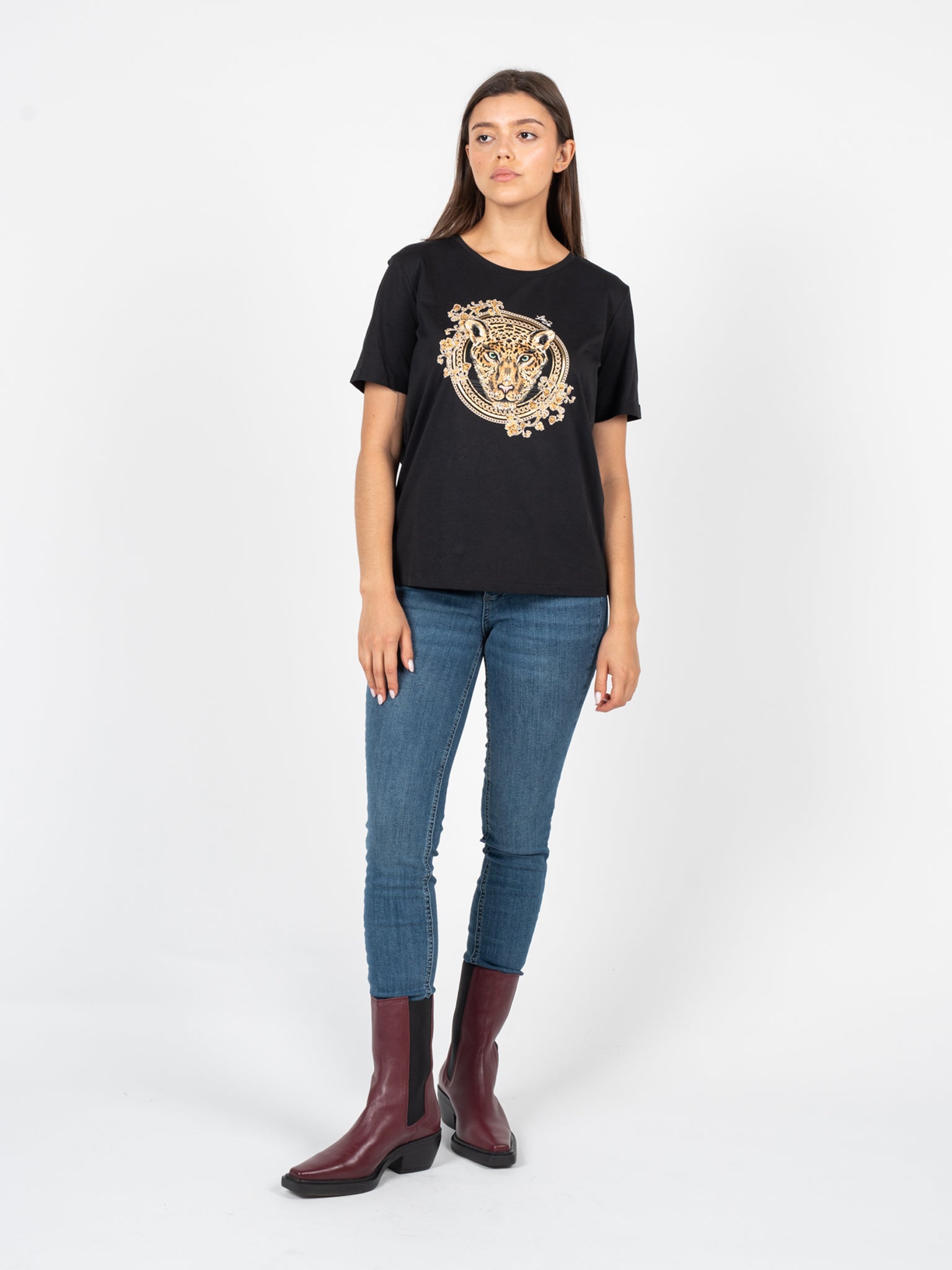 Dekolt okrągły dodaje klasycznego uroku, podkreślając szyję i sprawiając, że bluzka jest doskonałym wyborem do różnych stylizacji, od casualowych po eleganckie.