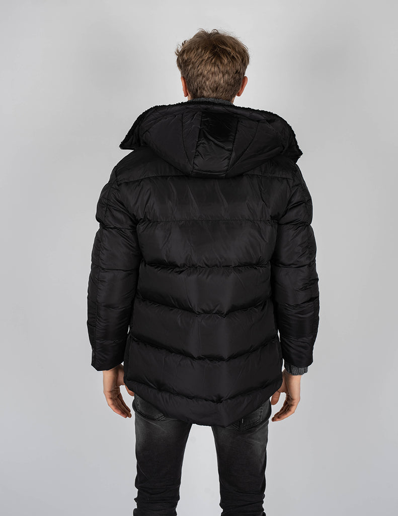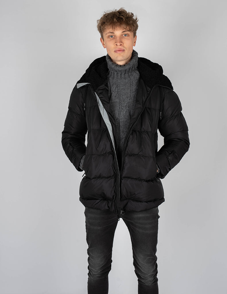 Mit einer durch Kordelzug verstellbaren Kapuze